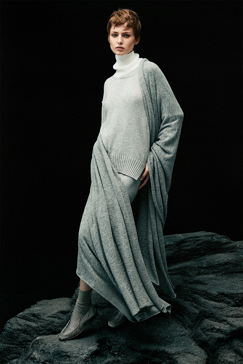 The Ferrante FW 25/26 Collection imagines a woman enveloped in authentic, natural and never ostentatious elegance. The soft lines of the knitwear and neutral shades evoke the purity of the elements, conveying both strength and delicacy.