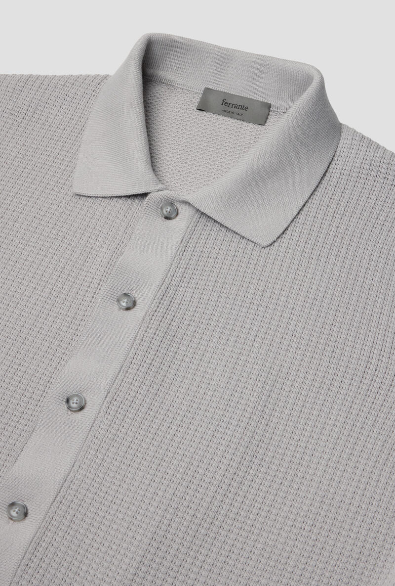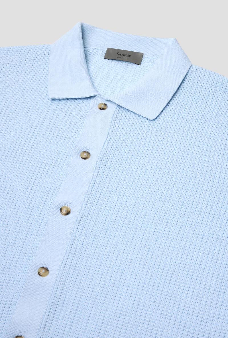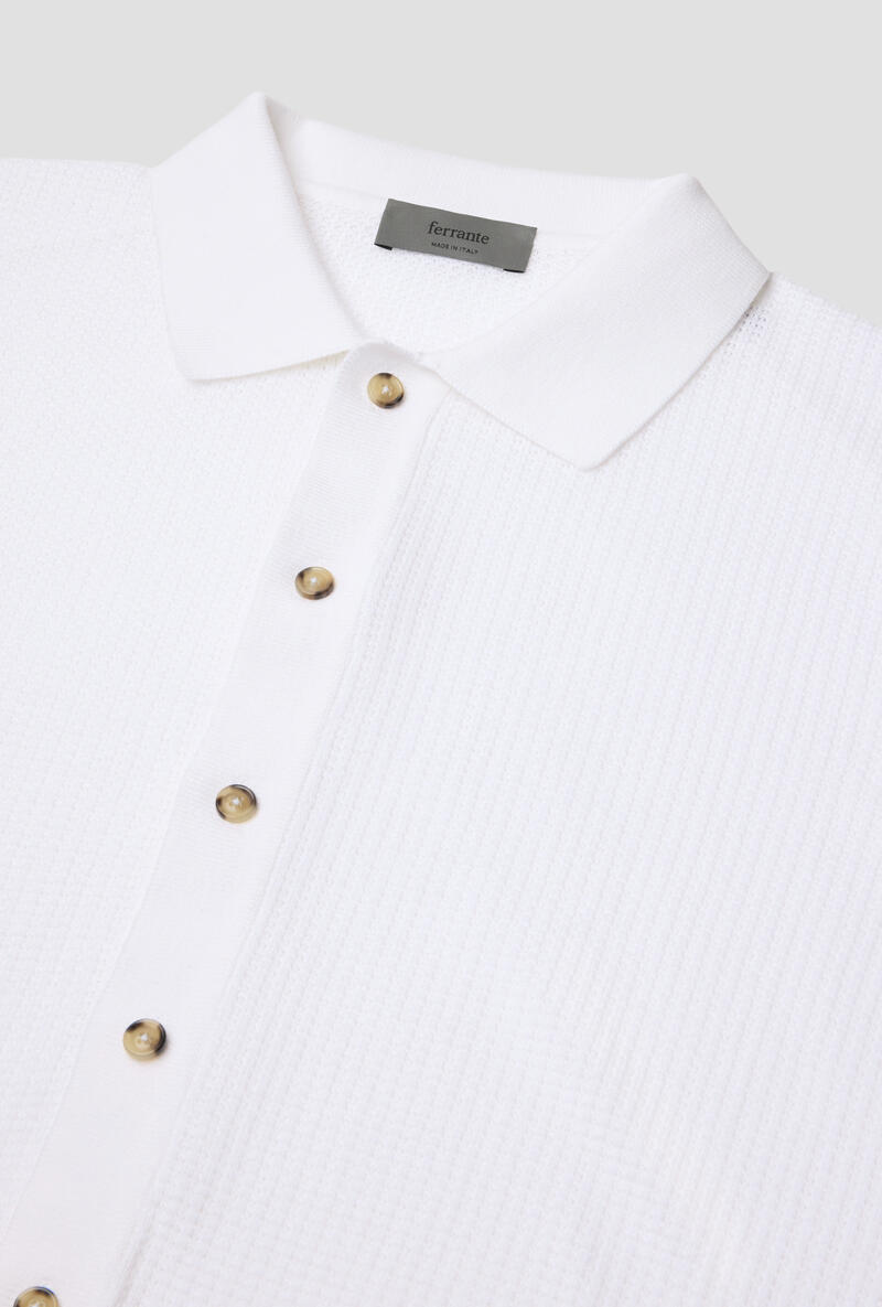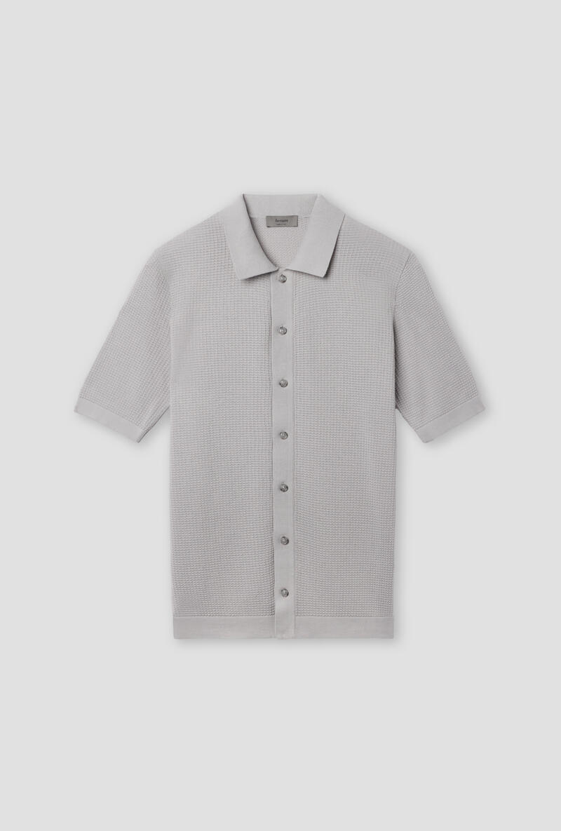 Short-sleeved shirt in pure cotton, featuring a structured knit that gives the garment depth and a refined look. The front button placket and clean lines define an essential and balanced construction, designed for a sober and contemporary style.