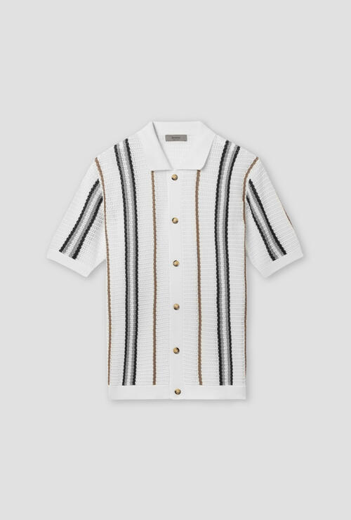 Short-sleeved polo shirt without buttons, made of cotton, featuring a distinctive and refined texture. The line is clean and essential, with a formal balance that enhances the construction and contemporary look of the model.