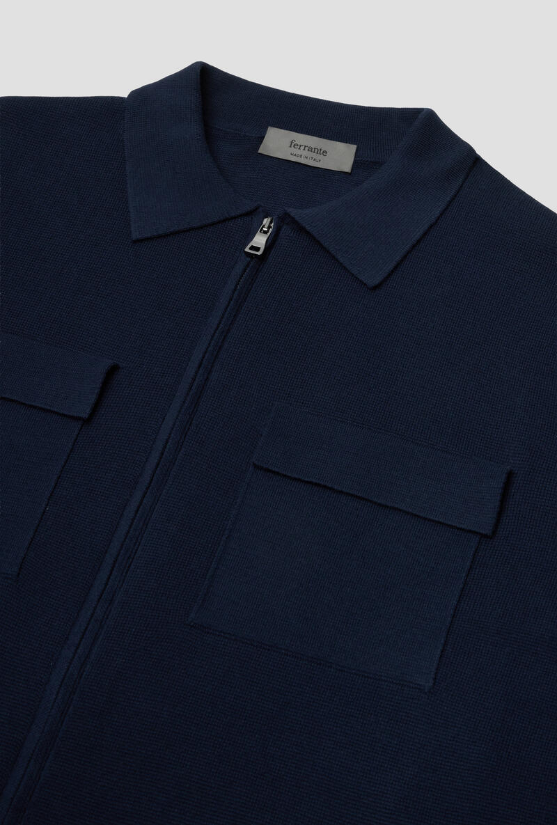 Chiusura frontale con zip a doppio cursore.Texture strutturata e compatta.Vestibilità regolare.Made in Italy.