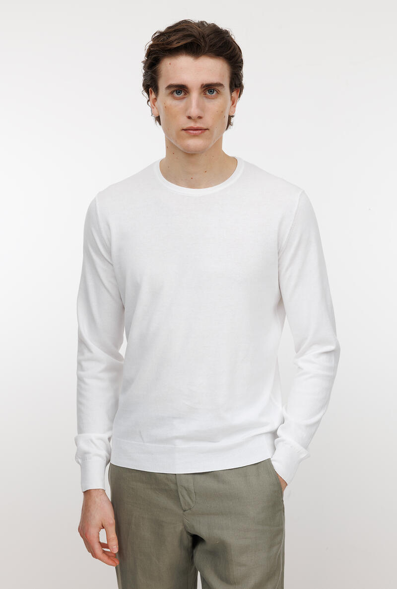 Lavorazione in maglia fine.Fondo e polsini a costina.Vestibilità regolare.Made in Italy.Il modello è alto 1,86, e indossa la taglia 50.