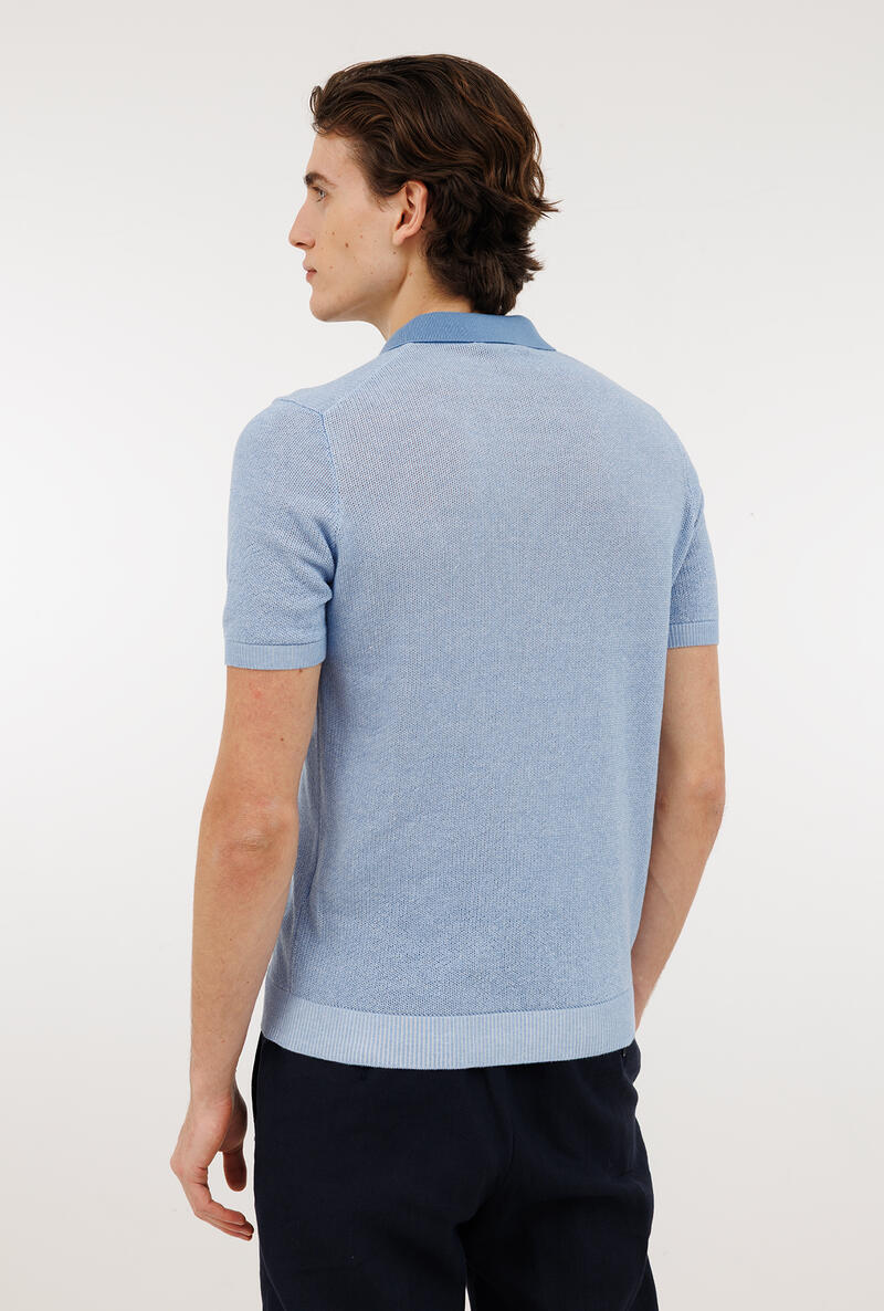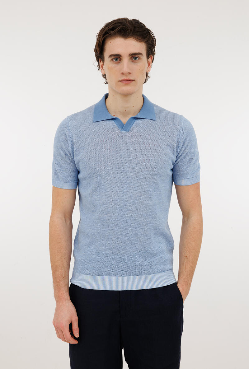 Polo dalla particolare lavorazione vanisè, che mantiene la classica struttura del capo ma senza la bottonatura centrale sul collo. Un capo fresco, comfortevole e molto versatile, adatto al quotidiano ma anche prezioso ed elegante per arricchire un look serale.