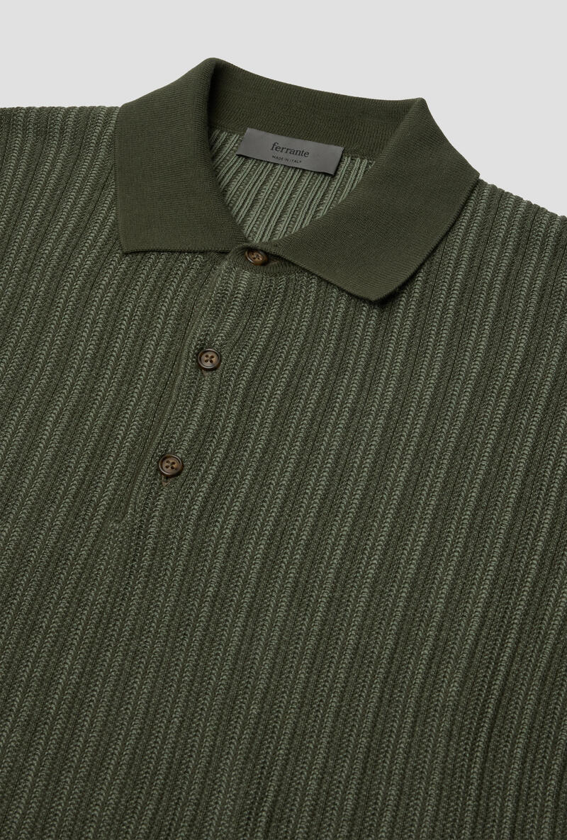 Polo in maglia a coste verticali.Bottonatura frontale a 3 bottoni.Made in Italy.Vestibilità regolare.Il modello è alto 1,86, e indossa la taglia 50.